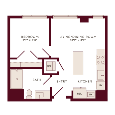 Explore floor plans for our timeless studio-, one- and two-bedroom apartments in the 14TH and U Street neighborhood. Make any space your own with dynamic designs and spacious floor plans.